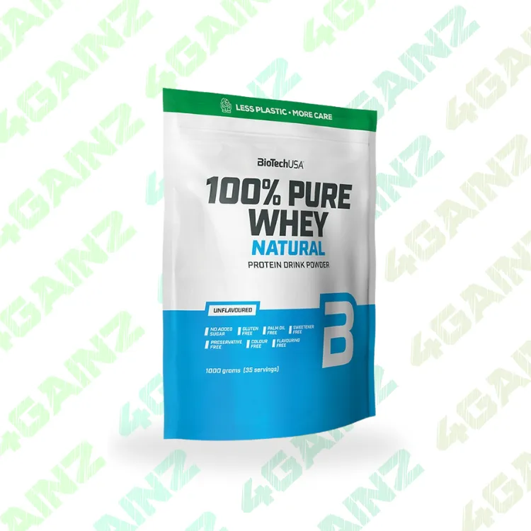 BioTechUSA 100% Pure Whey yra puikus pasirinkimas tiems, kurie ieško geriausios kokybės baltymų. Šis papildas užtikrina greitą ir efektyvų baltymų pasisavinimą, kadangi yra pagamintas iš išrūgų baltymų koncentrato ir izoliato. „100% Pure Whey“ išsiskiria švaria sudėtimi: jame nėra pridėtinio cukraus, palmių aliejaus, glitimo ar konservantų. Produktas praturtintas amino rūgštimis, įskaitant glutaminą ir BCAA. Galimi šie skoniai: nepaskanintas, burbono vanilė, ryžių pienas, sūdyta karamelė, braškė, bananas, obuolių pyragas, šokoladas-kokosas, juodieji sausainiai, sausainiai su kremu, lazdynų riešutas, karamelė-kapučino, šokoladas su žemės riešutų sviestu ir aviečių sūrio pyragas.