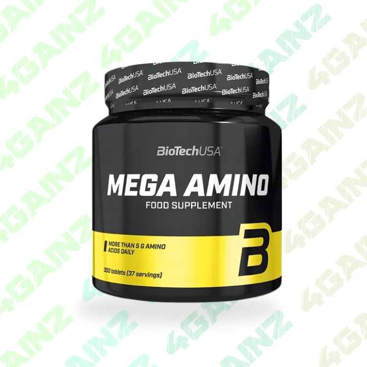 „BioTechUSA Mega Amino“ yra kompleksinis aminorūgščių papildas tablečių pavidalu, suteikiantis visas esmines ir neesmines aminorūgštis raumenų augimui, atsistatymui ir apsaugai.