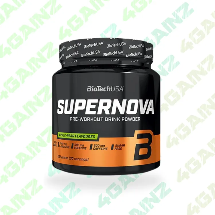 ioTechUSA Supernova“ yra galingas prieš-treniruotinis papildas su kofeinu, kreatinu ir amino rūgštimis, skirtas maksimaliam energijos, ištvermės ir „pompos“ efektui.