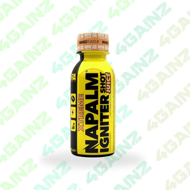 FA Nutrition XTREME NAPALM Igniter Shot – tai skystas sprogmuo jūsų treniruočių rutinai. Šis gėrimas, priklausantis legendinei Napalm serijai, yra sukurtas tiems, kuriems reikia maksimalaus stimuliavimo ir energijos. Viename buteliuke sutalpintos milžiniškos veikliųjų medžiagų dozės, kurios pažadins jus net po sunkiausios dienos ir paruoš pačioms intensyviausioms treniruotėms.