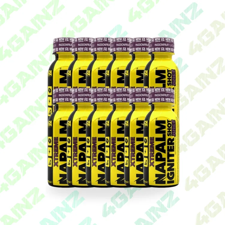 FA Nutrition XTREME NAPALM Igniter Shot – tai skystas sprogmuo jūsų treniruočių rutinai. Šis gėrimas, priklausantis legendinei Napalm serijai, yra sukurtas tiems, kuriems reikia maksimalaus stimuliavimo ir energijos. Viename buteliuke sutalpintos milžiniškos veikliųjų medžiagų dozės, kurios pažadins jus net po sunkiausios dienos ir paruoš pačioms intensyviausioms treniruotėms.