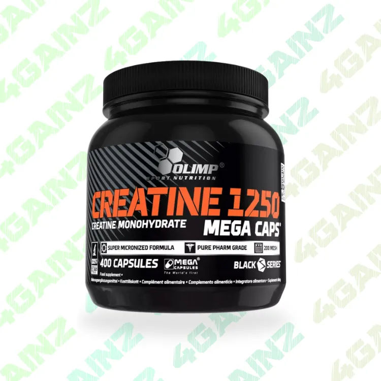 „Olimp Creatine 1250 Mega Caps“ – tai patogus maisto papildas kapsulėmis, skirtas intensyviai sportuojantiems asmenims, norintiems pagerinti savo fizinį pajėgumą ir paspartinti raumenų augimą. Kiekvienoje kapsulėje yra didelė kreatino monohidrato dozė, kuri padeda padidinti adenozino trifosfato (ATP) atsargas raumenyse. ATP yra pagrindinis energijos šaltinis atliekant trumpalaikius, didelio intensyvumo pratimus, tokius kaip jėgos pratimai ar sprinto bėgimas. Šio produkto mikronizuota formulė užtikrina maksimalų pasisavinimą. Patogios kapsulės idealiai tinka naudoti kelionėse ar tiems, kurie nemėgsta miltelių.