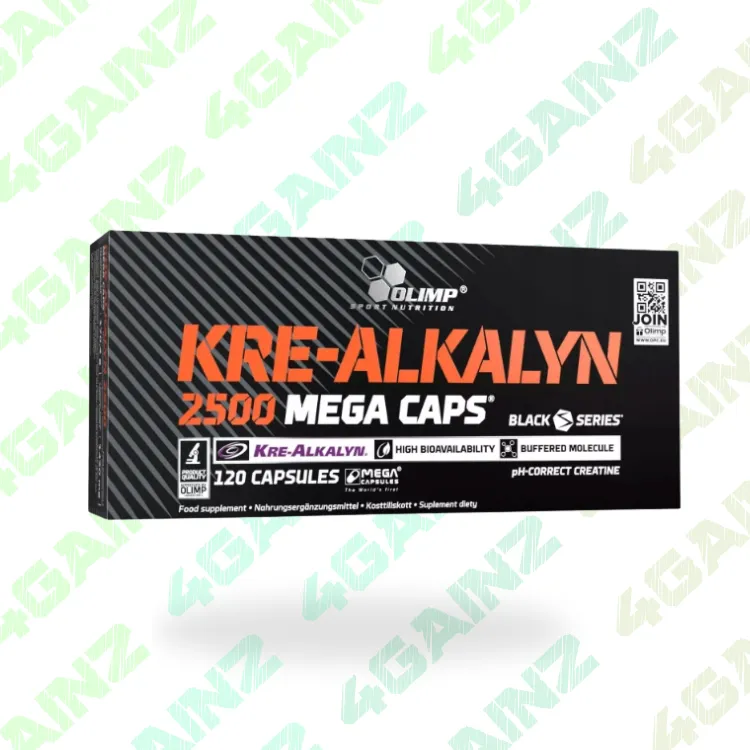 „Olimp Kre-Alkalyn 2500 Mega Caps“ yra patentuota buferinio kreatino monohidrato (Kre-Alkalyn®) formulė, skirta padidinti fizinį pajėgumą be šalutinių poveikių.
