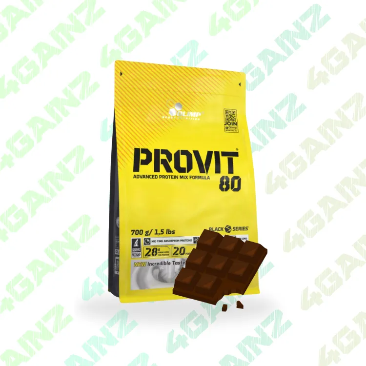 Olimp Provit 80 yra pažangus baltymų mišinys, skirtas užtikrinti ilgalaikį raumenų aprūpinimą aminorūgštimis. Jame sujungti skirtingi baltymų šaltiniai, pasisavinami lėtai. Tai puikus pasirinkimas prieš miegą ar dienos metu, siekiant apsaugoti raumenis nuo irimo.