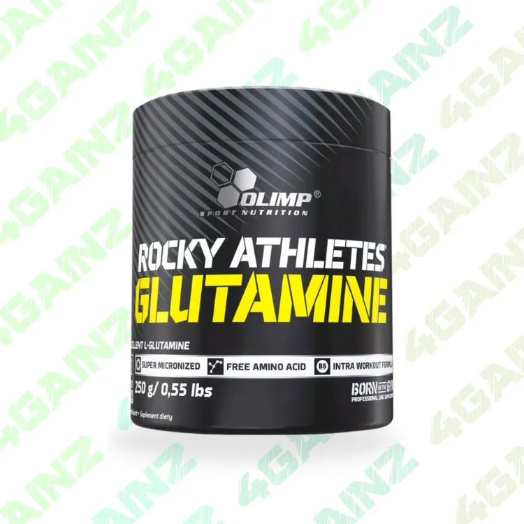 „Olimp Rocky Athletes Glutamine“ yra mikronizuoti L-glutamino milteliai, skirti raumenų atsistatymui, imuniteto palaikymui ir energijos tiekimui.