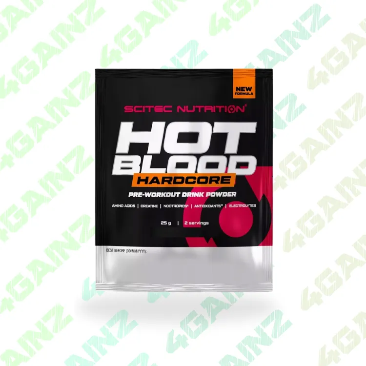 „Scitec Hot Blood Hardcore“ yra galingas prieš-treniruotinis papildas, skirtas padidinti energiją, pagerinti „pompos“ efektą ir ištvermę intensyvių treniruočių metu.